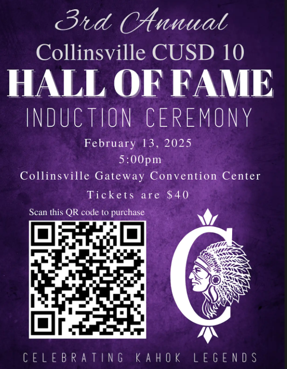 Tickets are now on sale for the 2025 Collinsville Community Unit School District #10 Kahok Hall of Fame dinner and induction ceremony on Thursday, February 13, 2025, at the Gateway Center in Collinsville. Tickets are $40 each and can be purchased by using THIS LINK. Previous years have SOLD OUT. Reserve your tickets soon.